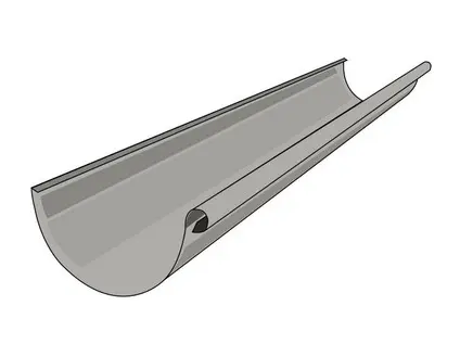 Půlkulatý střešní okapový žlab z titanzinku, rozvinutá šíře plechu 330 mm a délka žlabu 4000 mm.