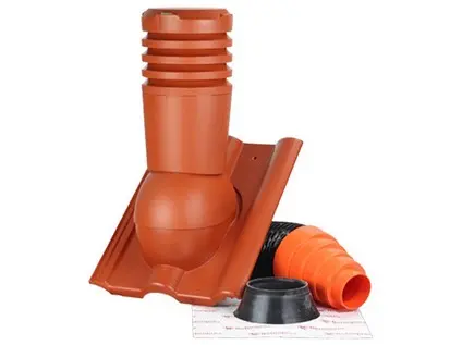 Celý odvětrávací komplet je z UV stabilizovaného plastu a obsahuje tvarovku ve tvaru tašky základní, odvětrávací komínek s kloboučkem a s flexi připojovací trubicí ∅ 125 mm.