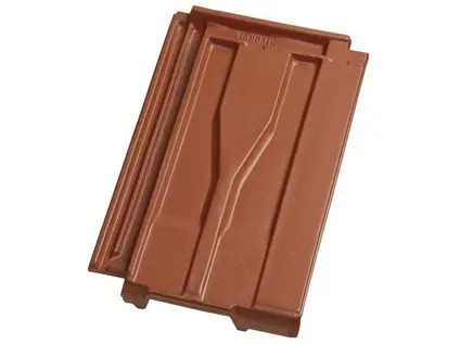 Taška větrací – systém Tondach naplňuje zásady větraného střešního pláště. K tomuto účelu se tašky umisťují v druhých řadách po obou stranách hřebene střechy (ev. nároží) v potřebném množství cca 34 ks/100 m²